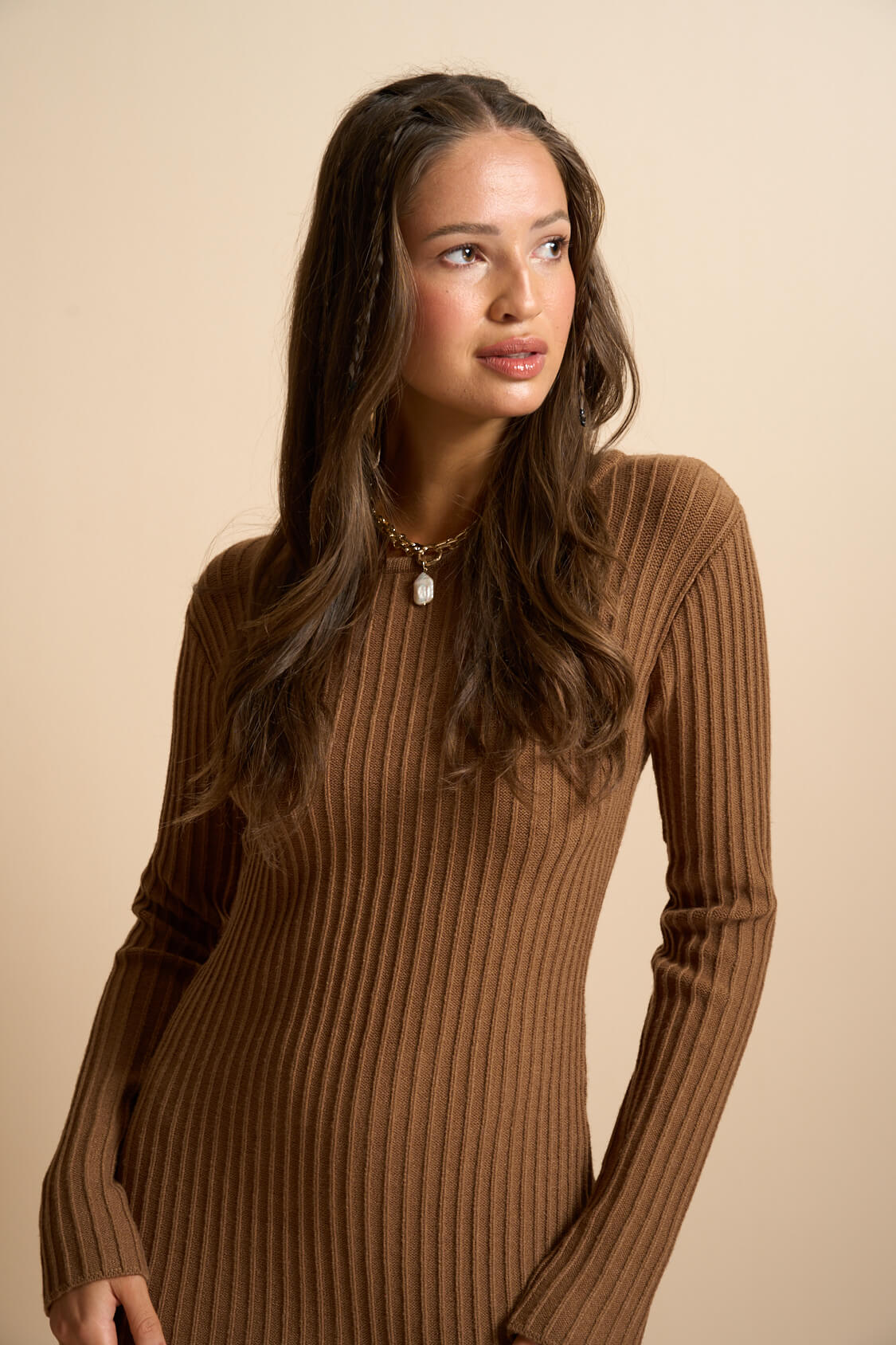 Effortless minimalism meets soft elegance in this ribbed-knit short dress. The Soraya is crafted for modern ease—featuring ultra-soft 100% viscose, a fitted silhouette, and a clean round neck that radiates quiet refinement.