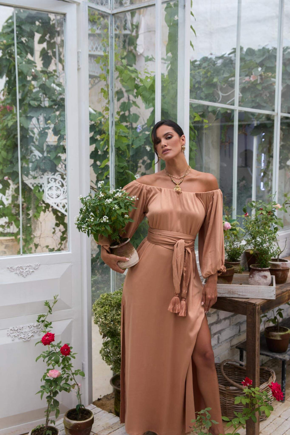 Eve Off The Shoulder Maxi Dress Mocha Mousse