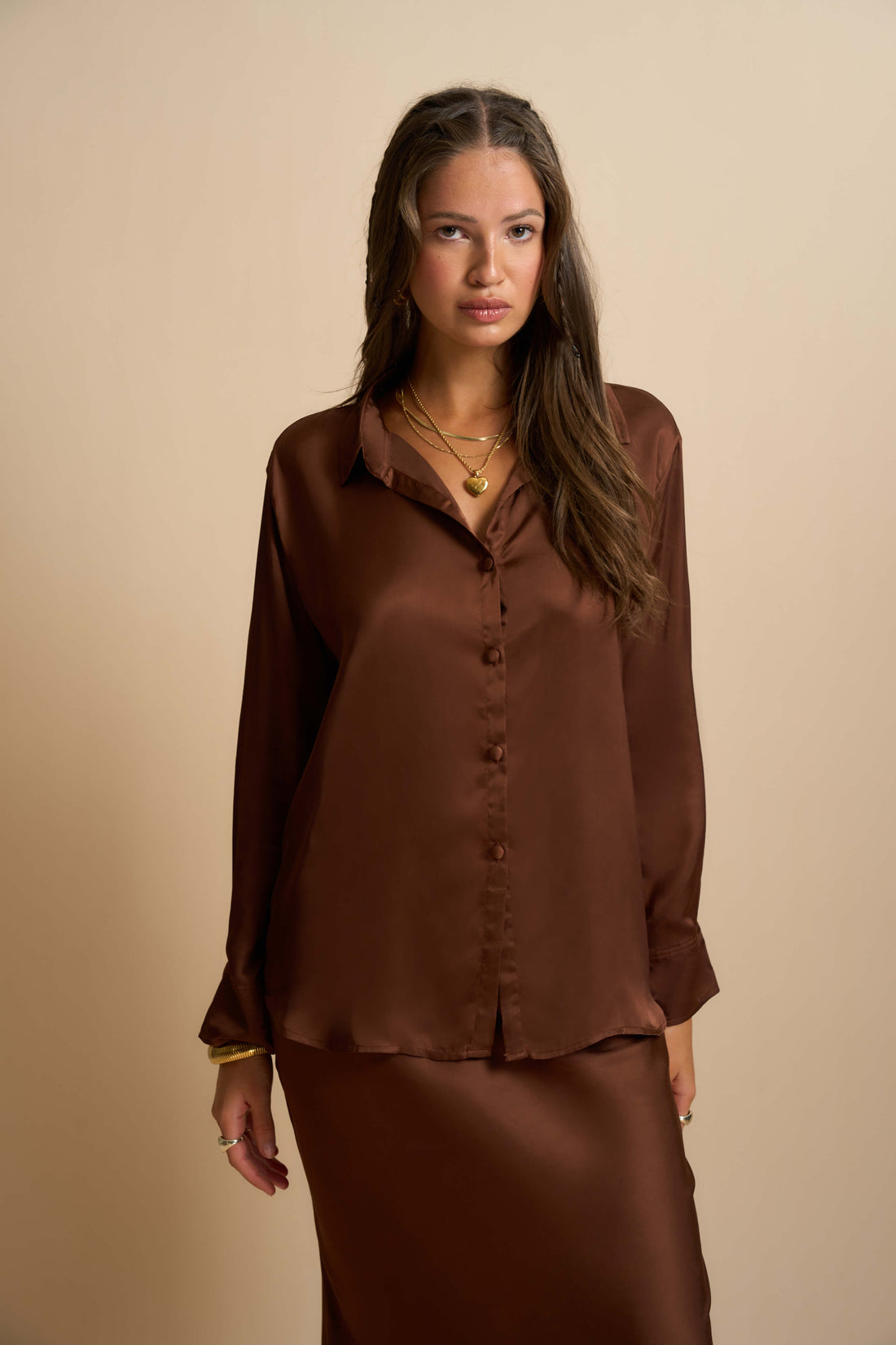 Satin-sleek meets effortless elegance — the Juno Shirt is your refined essential for elevated ease....