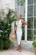 All eyes on you in the Vivi Midi Dress in Milky Green. An elegant silhouette, tie-ups at the back to close the top with a backless design. Flattering to the body, the Vivi Midi dress is a versatile piece for casual and formal occasions that is easy to dress up or down. Made with luscious viscose satin.