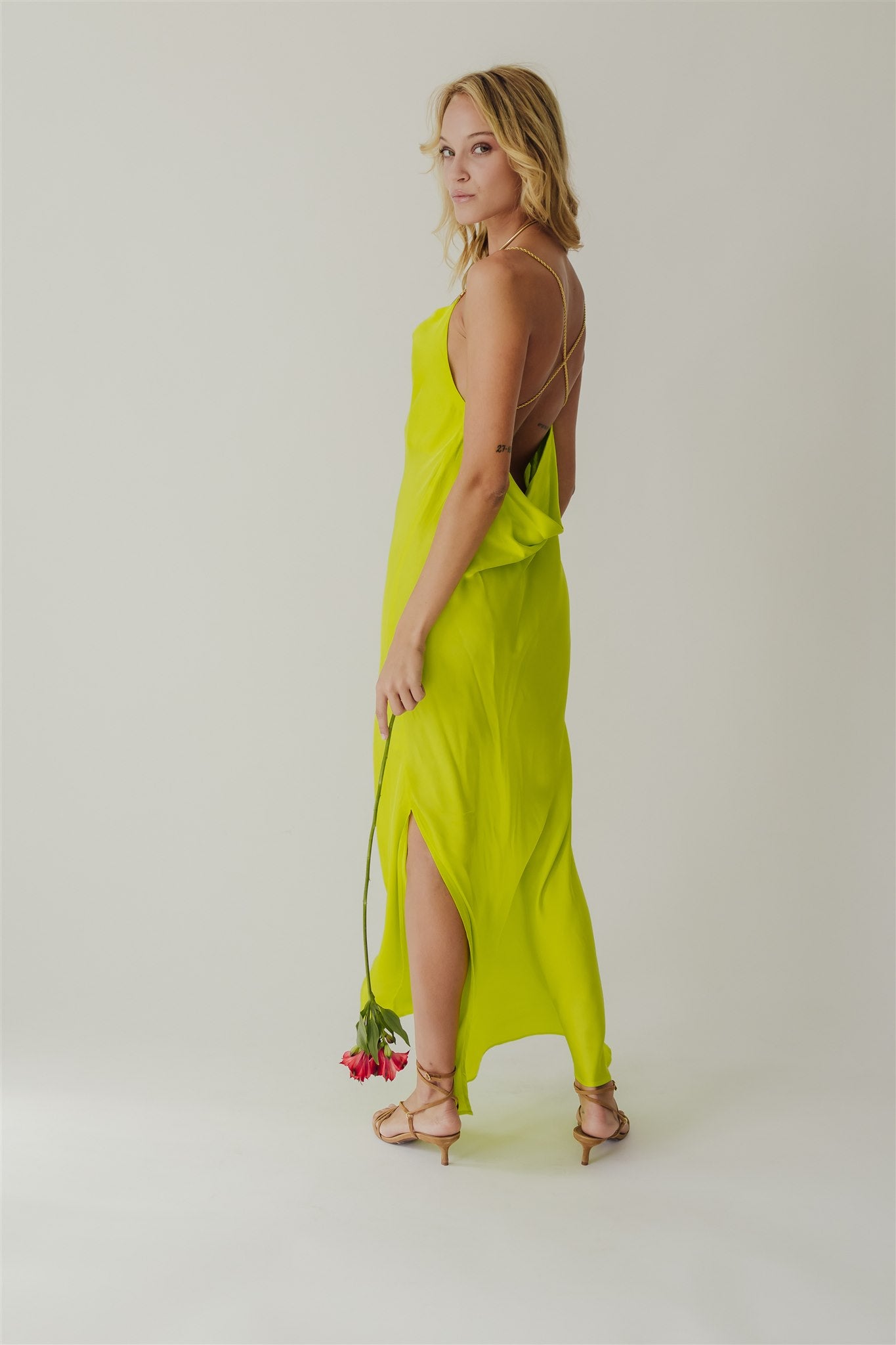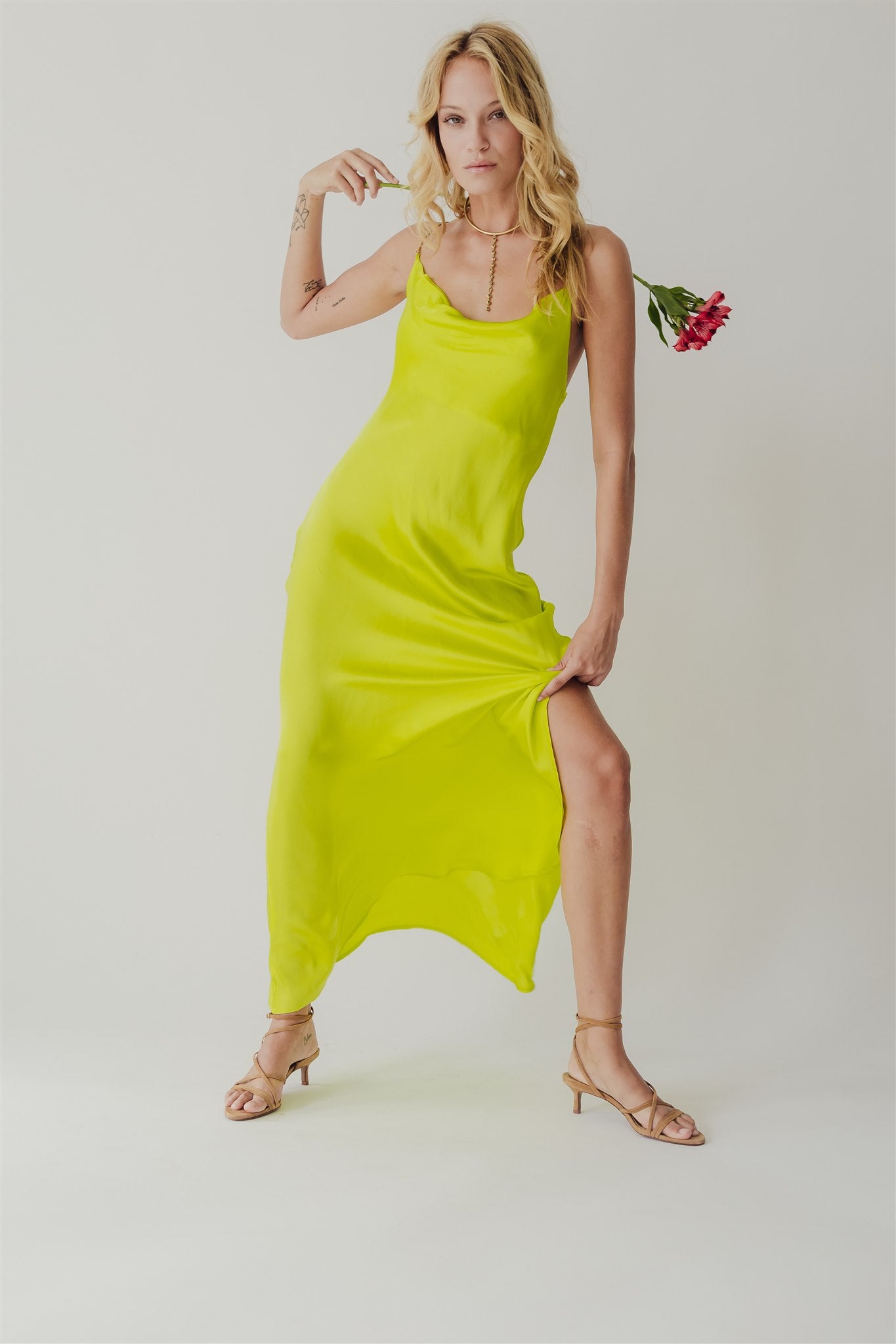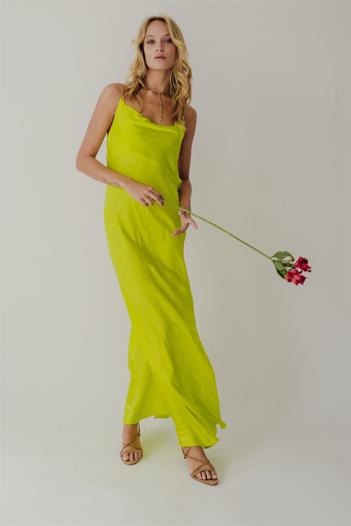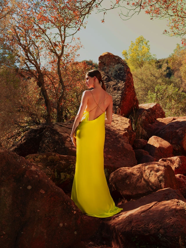 Fara Satin Long Dress Cyber Lime