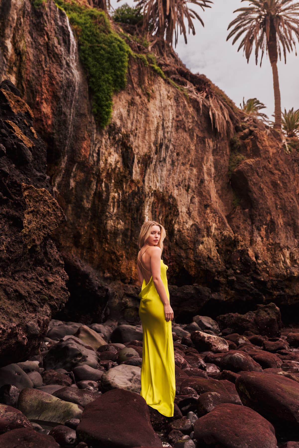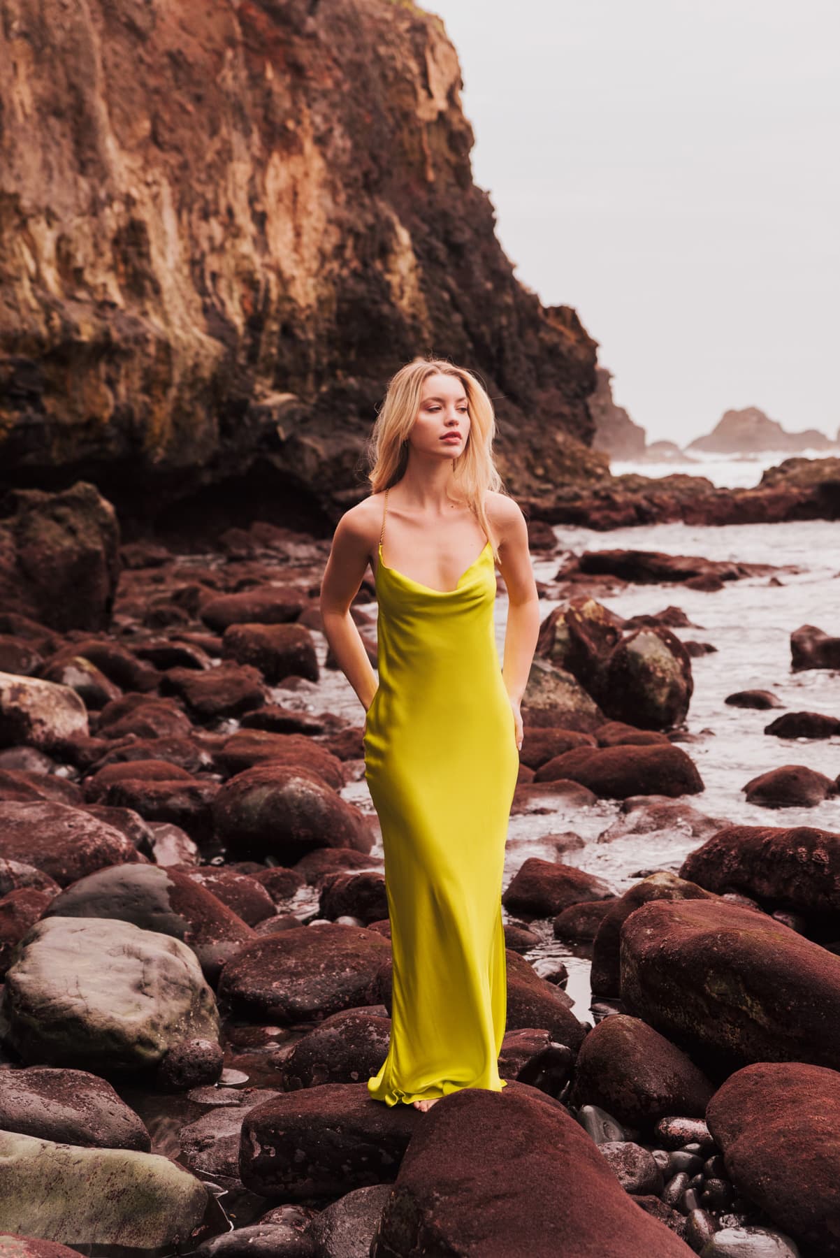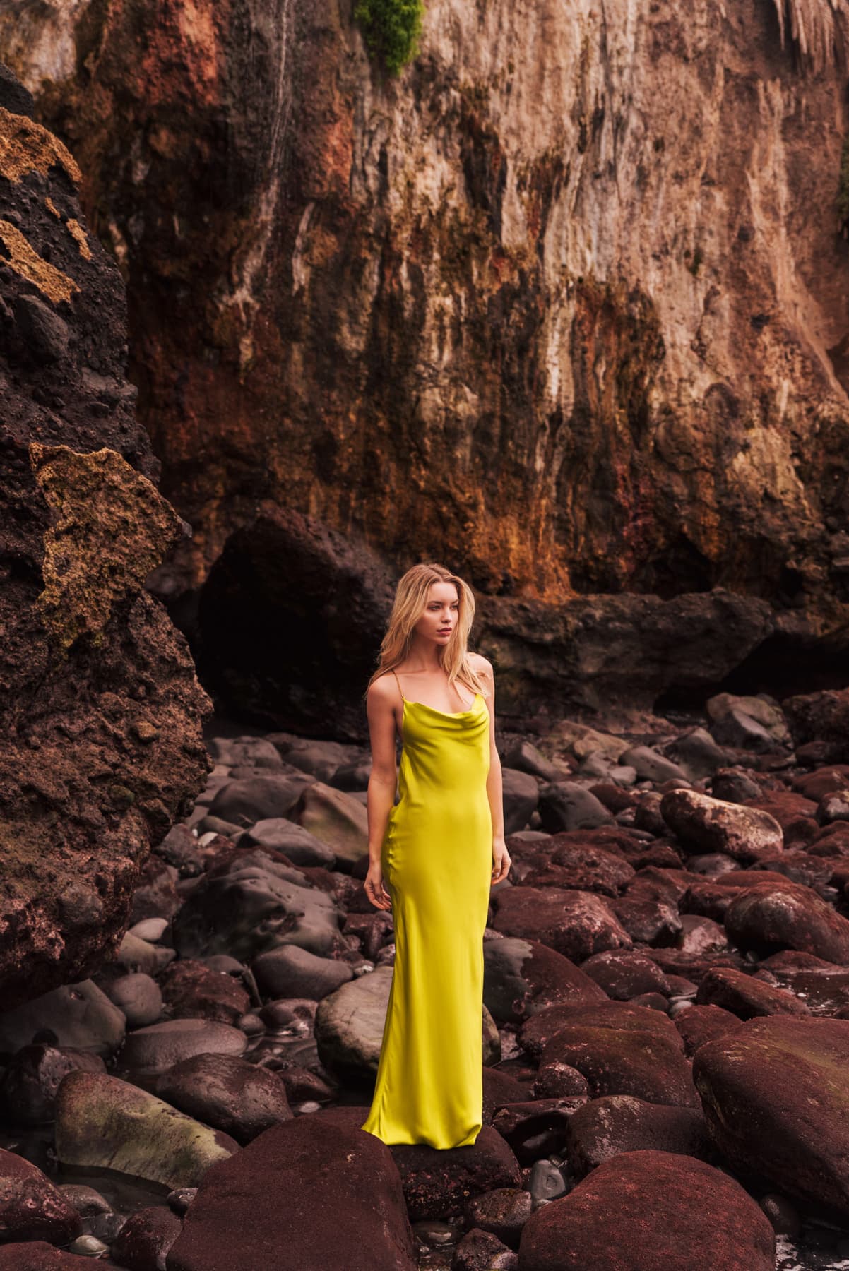 Decadent dressing is made easy in the Fara dress. A seemingly simple scooped cowl neckline transforms into dainty gold chain straps. Exuding timeless sophistication with her understated and elegant silhouette, she features a long skirt that pools at the feet, lustrous viscose satin material, a plunging cowl back and a sexy thigh-high split. Radiate undeniable charm and inject a playful, understated glamour into your wardrobe this party season with the Fara dress. Pair with barely-there heels and refined accessories to keep her in the spotlight, or for daytime glamour, we love how sleek western-style boots add a certain grunge for the autumn-winter season.