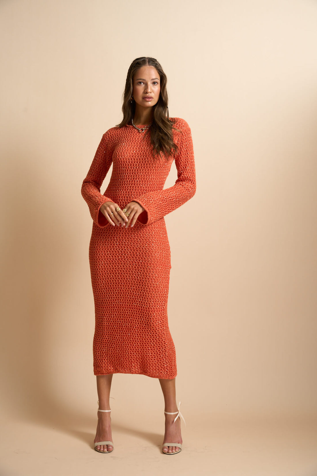 Slim fit knit midi dress in a knit cotton crochet.Round necklineMidi length100% CottonDesigned in SpainMade...