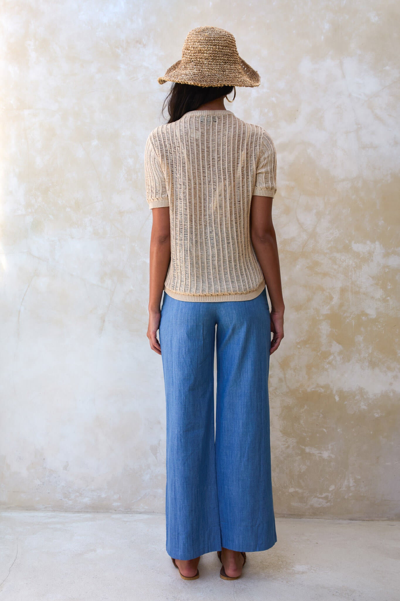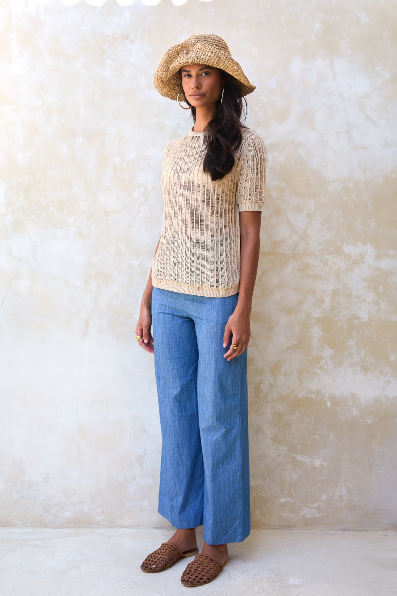 The Lulea Knit T-Shirt is the perfect blend of ease and elegance, designed for effortless everyday wear. Crafted from a soft, breathable knit fabric, it features a relaxed yet flattering fit with a classic round neckline and short sleeves. Its versatile silhouette makes it a staple piece—wear it loosely for a laid-back look or tuck it into tailored pants or a skirt for a refined finish.