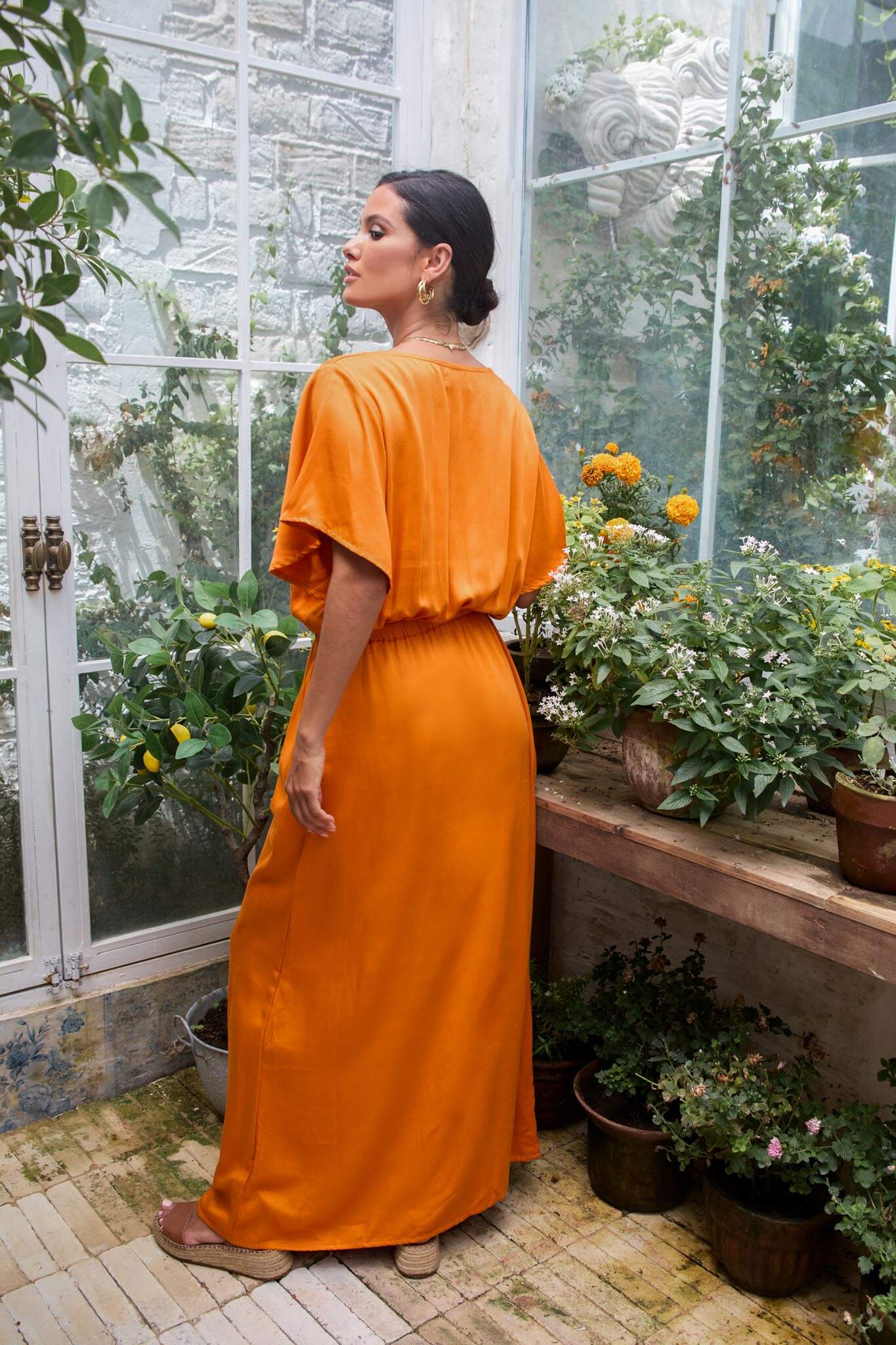 Vestido largo con cuello en V Alizée Naranja Quemado