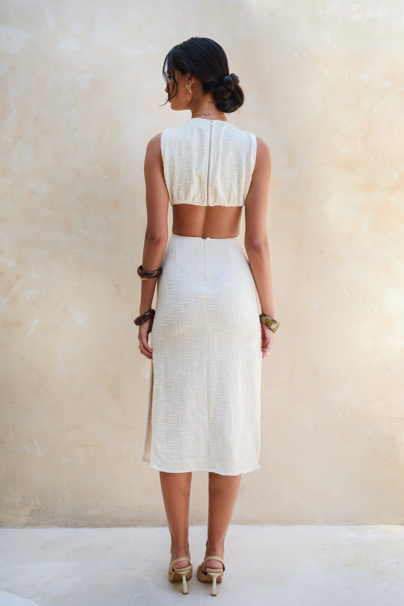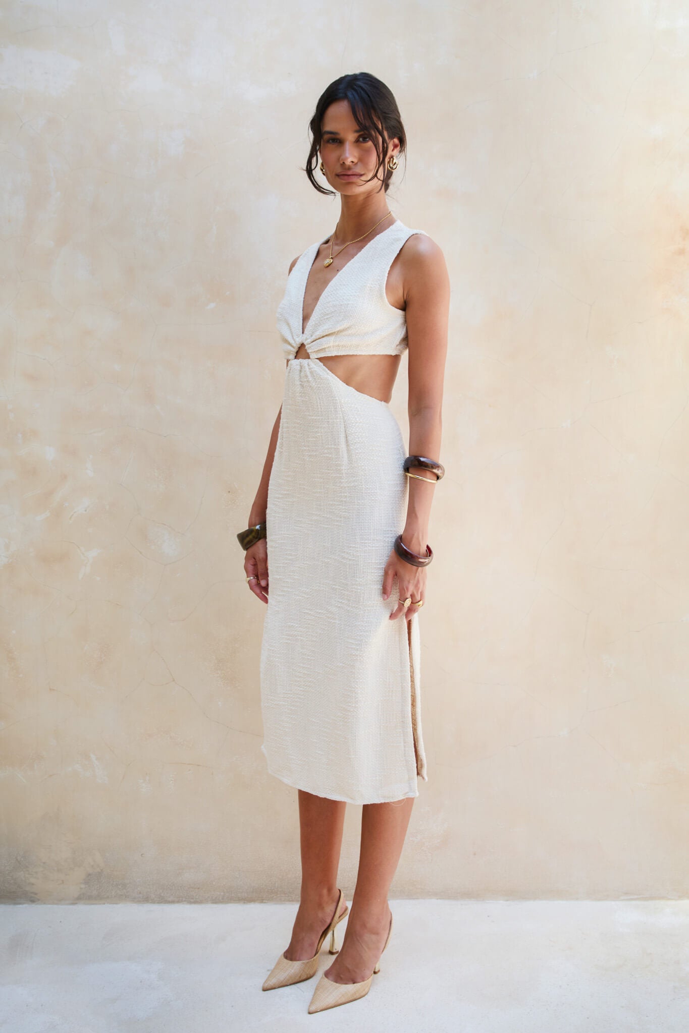 Sensual y natural con un toque de elegancia costera, el vestido Chiara Midi te hará sentir segura. Su favorecedor escote en V y abertura central revelan sutilmente la cintura, realzando la silueta con un encanto natural. El largo midi ofrece libertad y gracia, mientras que su algodón transpirable lo convierte en la opción perfecta para escapadas en la hora dorada y para esos momentos especiales.