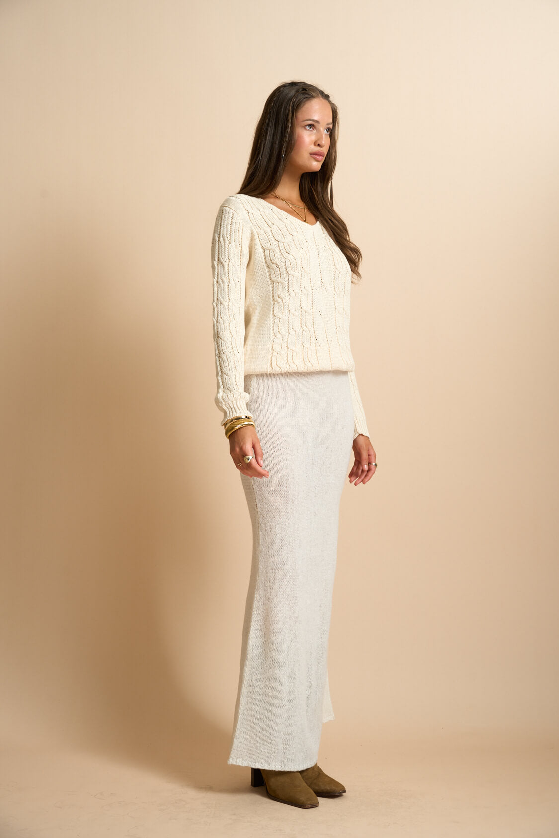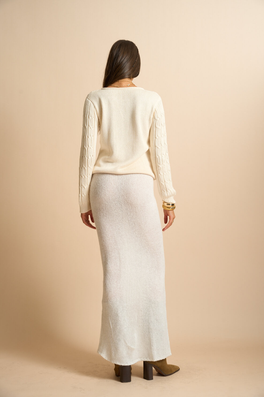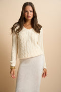 Elevate your seasonal wardrobe with the Eda Cable Knit Sweater, a piece that balances classic charm with modern comfort.