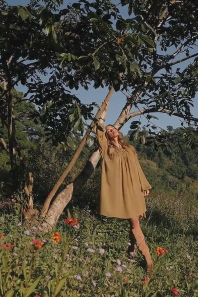 El vestido Kaia, una prenda fresca y bohemia ideal para días relajados, está confeccionado en suave crepé de viscosa con una caída fluida y vaporosa. Ligero, femenino y fácil de llevar, combina el romanticismo con un estilo relajado de playa.