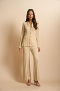 Confeccionados en un tejido suave y lujoso, estos pantalones tienen un corte holgado. Ligeros pero abrigados, combinan a la perfección con cualquier look, convirtiéndolos en una prenda básica versátil tanto para estar en casa como para salir. Combínalos con el cárdigan de punto Liora a juego para un conjunto elegante, o combínalos con tus prendas favoritas de diario para un look informal sofisticado.