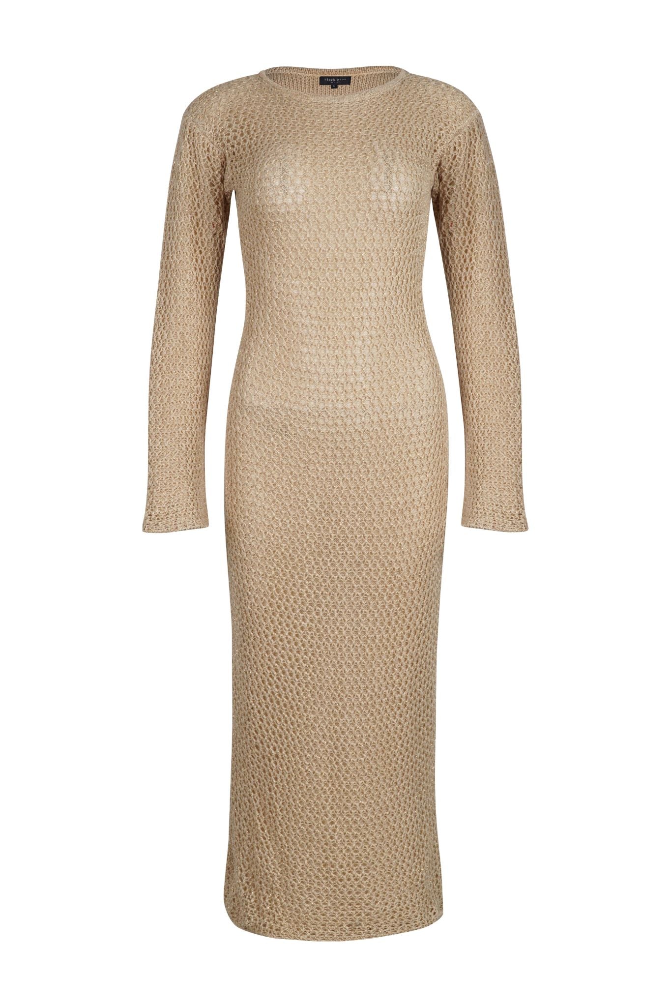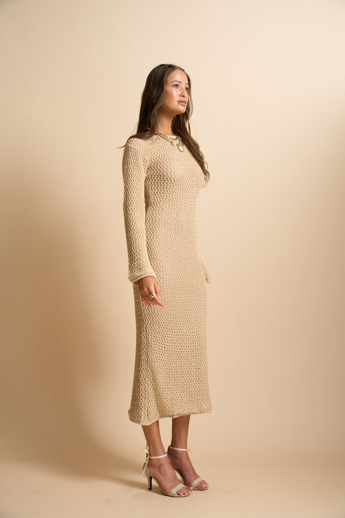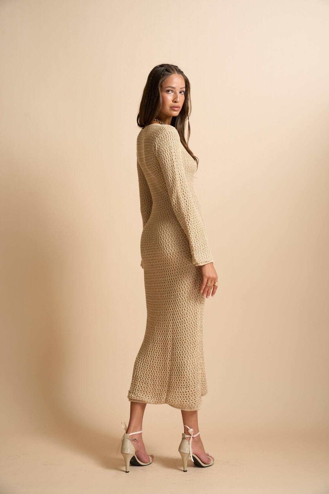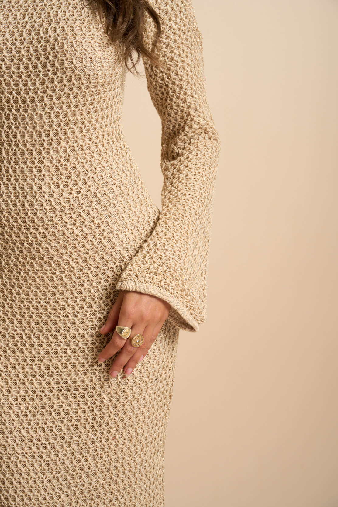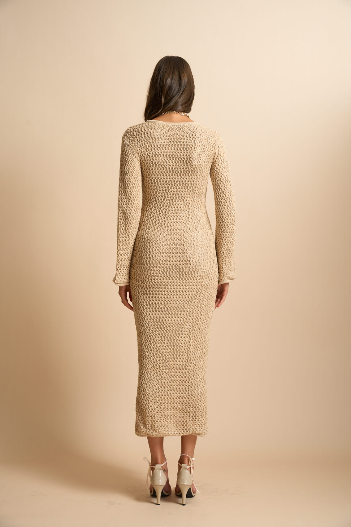 A harmonious blend of comfort and elegance, the Faye Dress is a versatile addition to your wardrobe. Crafted from 100% soft cotton and adorned with golden silky threads, this ankle-length dress offers a flattering silhouette suitable for various occasions.