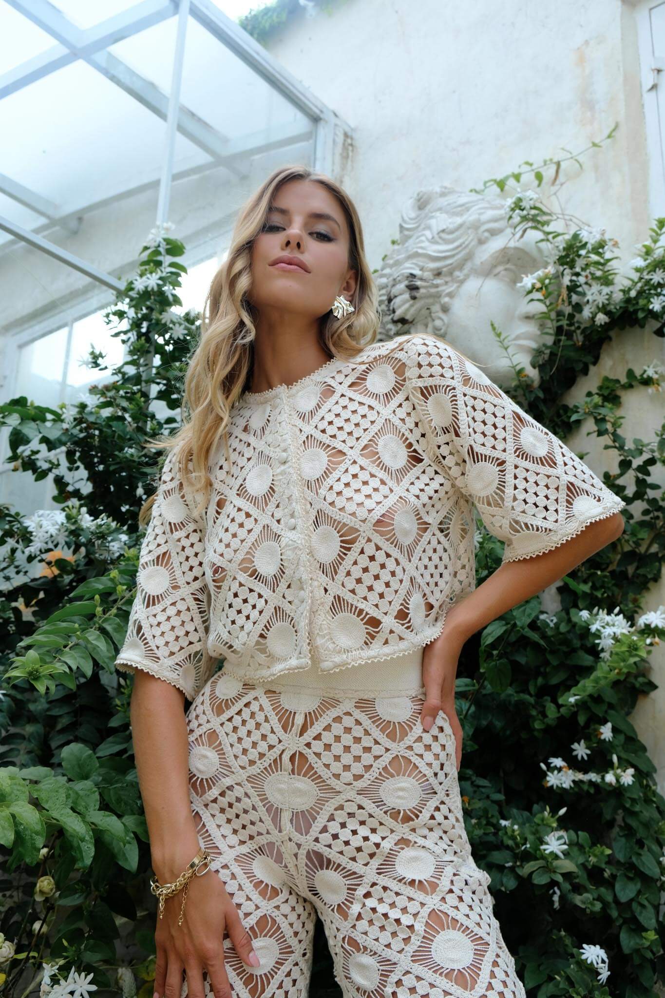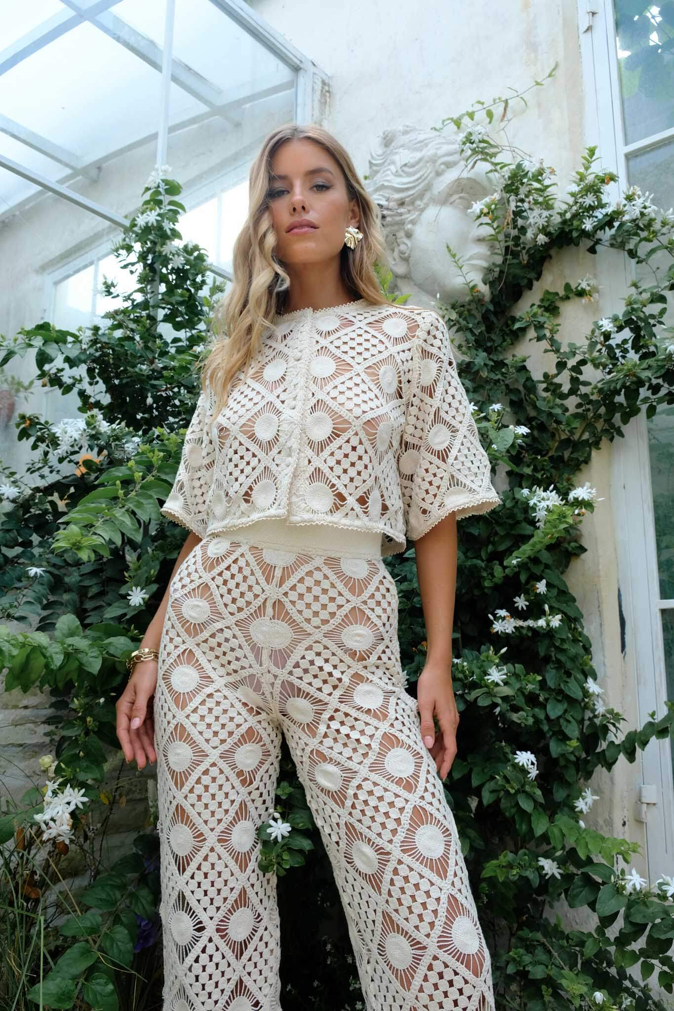 The Positano Crochet Shirt oozes summer charm with its delicate crochet cotton lace. The off-white color adds a touch of elegance, while the matching pants in the same crochet lace complete the chic look. Perfect for a stylish yet relaxed summer vibe. Buy it together with the Positano Pants to complete the look.
